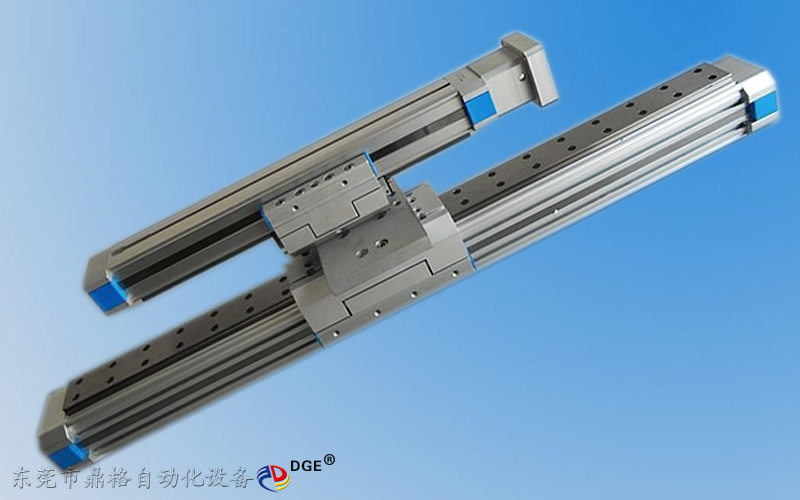 鼎格 DGE-25-SP-EG 伸縮機械手滑臺,采用25型、60型滑臺組合搭配-2條平行軸,缸筒型材(25型45*45mm-有效行程1-1000mm、60型64*64mm -有行程1-6000mm),水平負載能力1-20kg,傳動精度±0.1mm(行程1米以內(nèi)的精度),最高傳動速度500mm/s和5000mm/s(加減速時間 0.2秒)相關(guān)配件:上銀碳鋼直線導(dǎo)軌,德國馬牌同步帶,NSK防水防塵軸承,TBI滾珠絲桿,,可根據(jù)客戶行程要求設(shè)計定制.