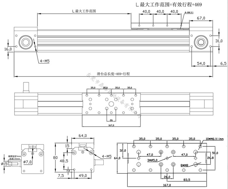 1.體 積小重量輕 采用寬度尺寸小的鋁制底座,實現(xiàn)了輕量、緊湊的構(gòu)造。高剛性、高精度、價格低、體積小、重量輕、鋁合金結(jié)構(gòu)、模組化設(shè)計、滑動臺和底座經(jīng)過陽極處理后,基 座 與滑動臺搭配,實現(xiàn)了高剛性和負(fù)載容量。對負(fù)載負(fù)荷的變位量小,用于搭載的質(zhì)量或外部負(fù)載變動的用途也能依然保持高穩(wěn)定性。