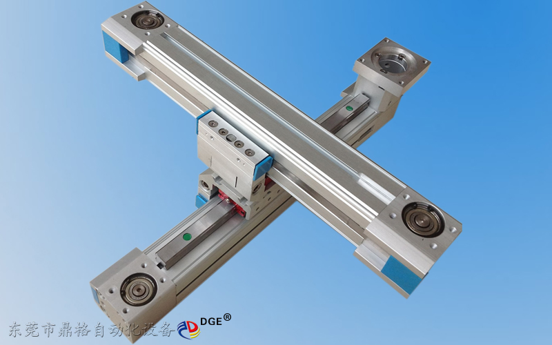 鼎格 DGE-60-TB-EG 同步帶十字滑臺,缸筒型材64*64mm,有效行程1-6000mm,負載能力1-60kg,Z軸垂直使用一般不建議使用同步帶,有輕微的負載運行速度較快,方可采用同步帶滑臺作Z軸使用,傳動精度高達±0.1mm(行程1米以內(nèi)的精度),最高傳動速度5000mm/s(加減速時間 0.2秒),同步輪20齒, 同步帶寬25mm,同步帶導(dǎo)程5M,同步輪轉(zhuǎn)一圈100mm,同步輪出軸Φ15mm,相關(guān)配件:上銀碳鋼直線導(dǎo)軌,德國馬牌同步帶,NSK防水防塵軸承,可根據(jù)客戶行程要求設(shè)計定制.